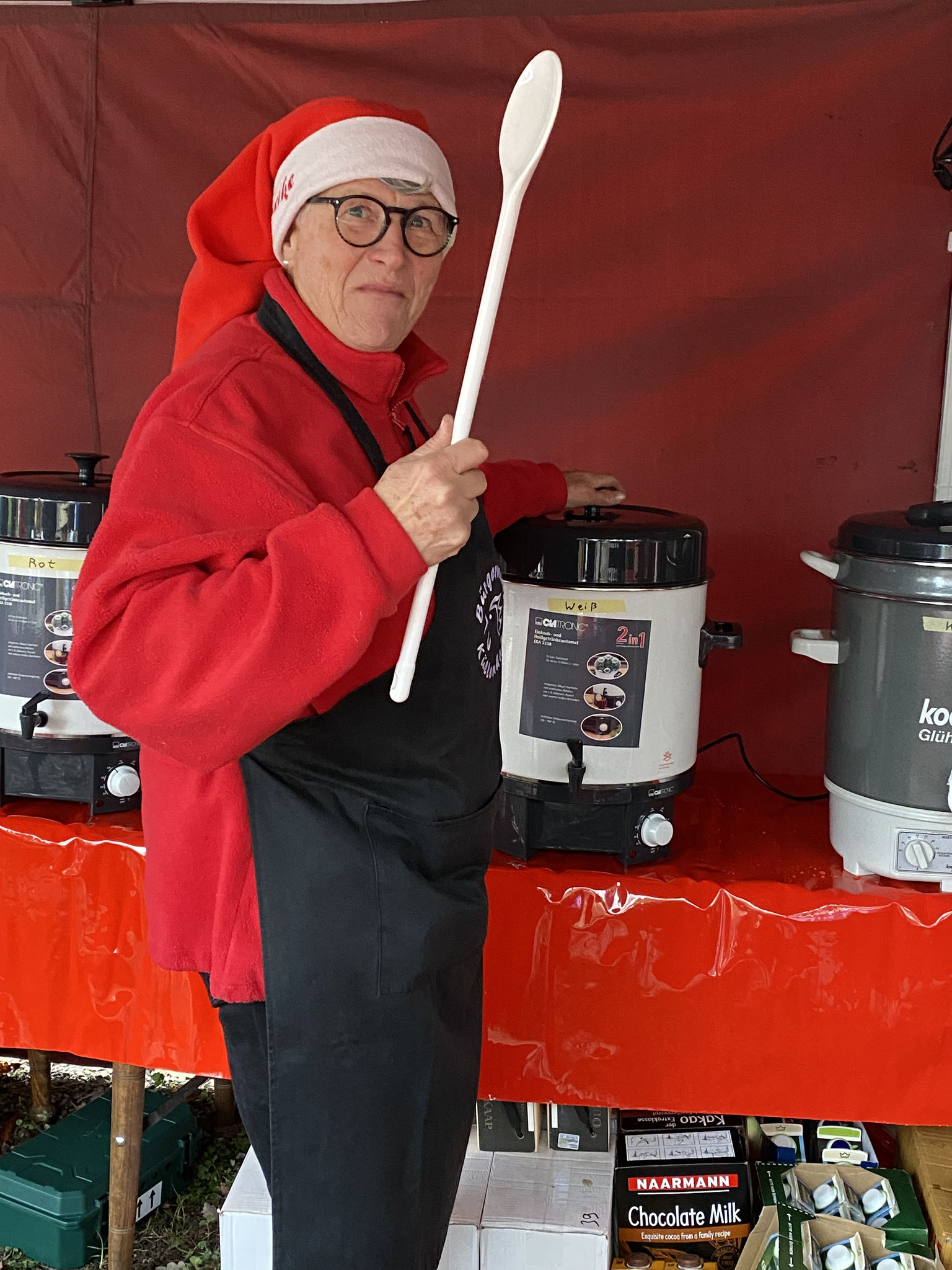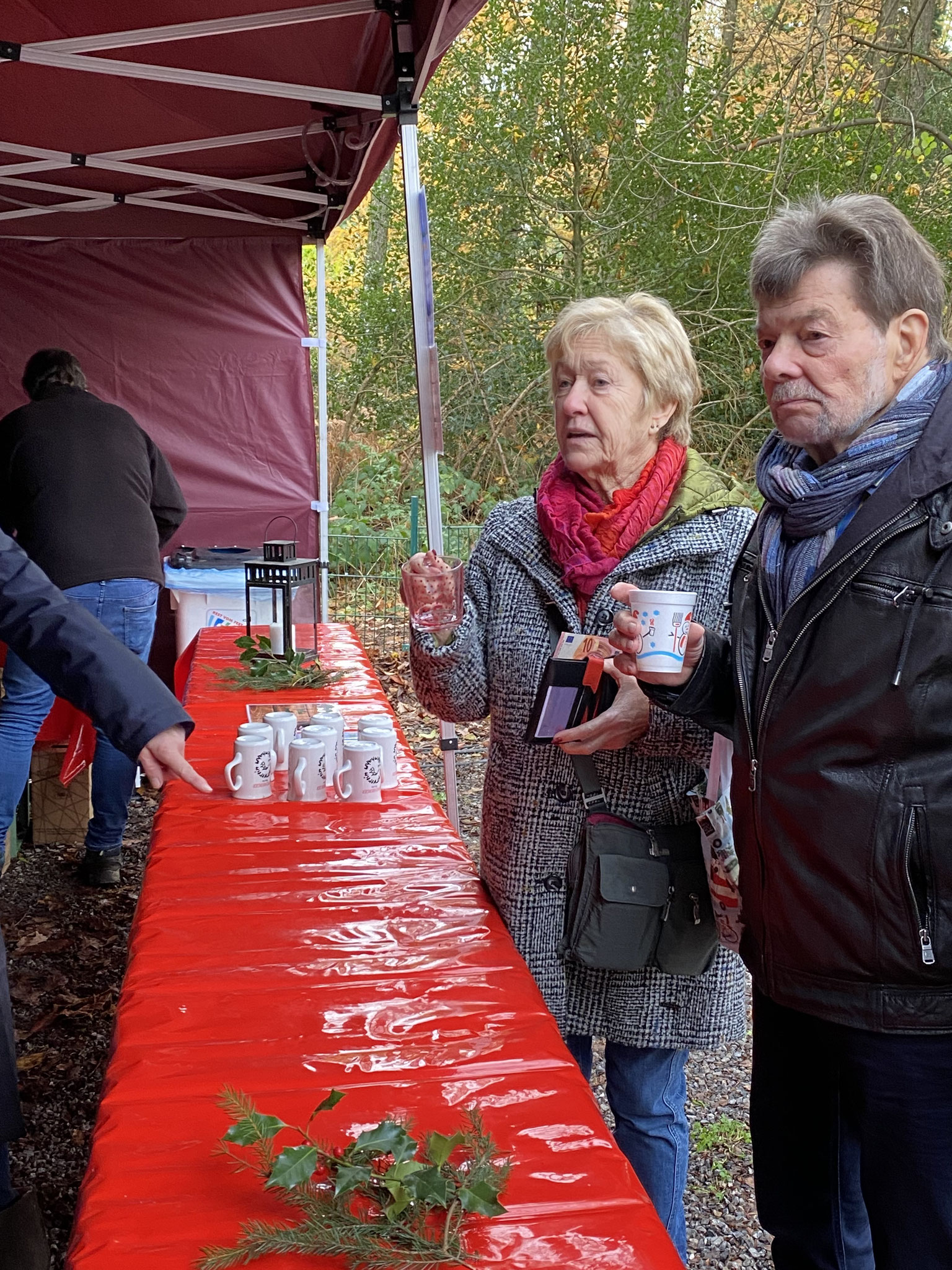 Dies Jahr gab es den wohl schmeckenden Glühwein entweder aus den neuen zu kaufenden Mehrwegbechern des Bürgervereins oder in eigenen Tassen ausgeschenkt!!