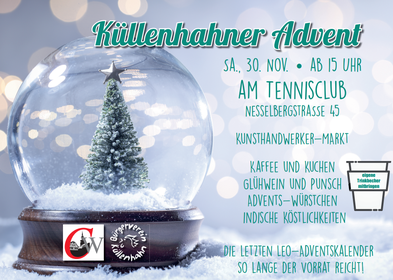 Am 29. November von 15 bis 21 Uhr ist es endlich wieder so weit. Der Bürgerverein Küllenhahn öffnet dann seinen 19. Küllenhahner Advent beim Restaurant Satzball / Tennisclub TCK.